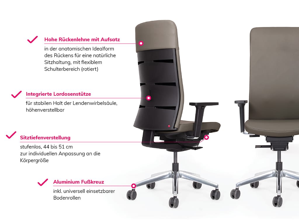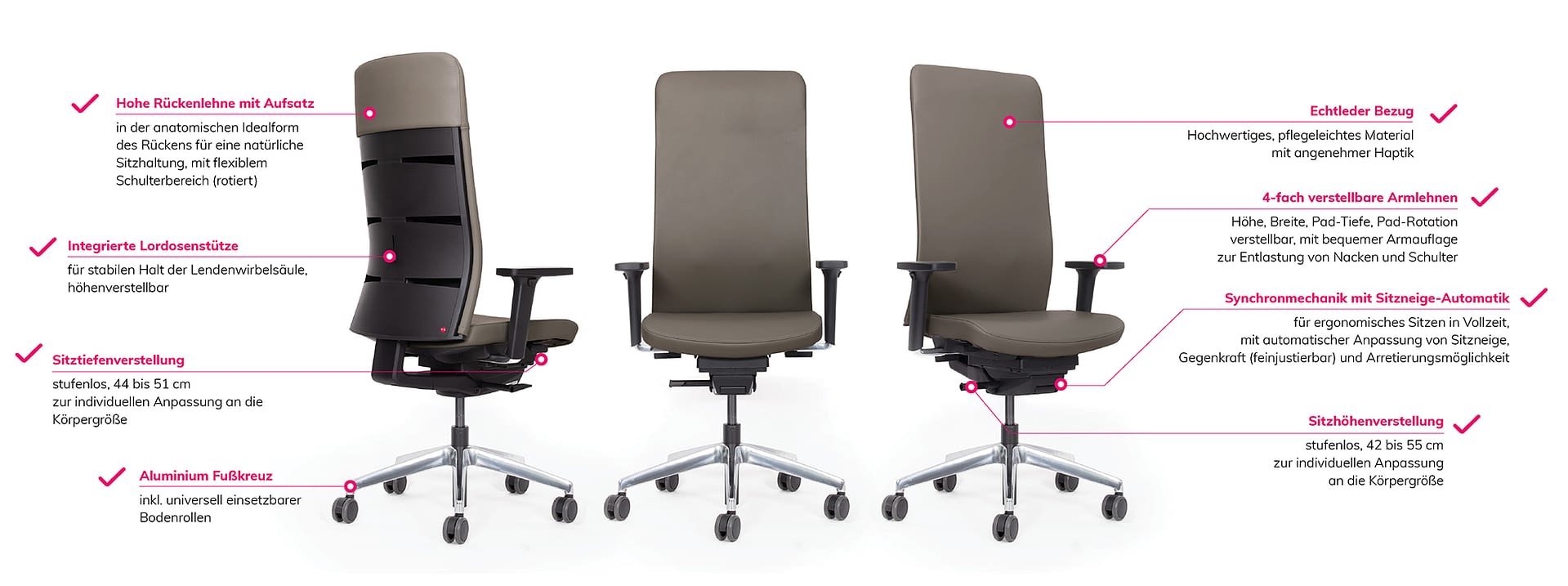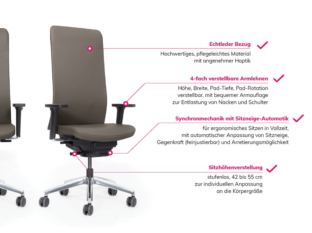 Direkt aus Deutschland: Der lento agilis matrix ist Ihr Weg zum bequemen Arbeiten, auch an langen Tagen im Büro. Die ergonomischen Chefsessel Bürostühle stehen für ein besonders freies Sitzgefühl und bringen alles mit, was man von einem ergonomischen Bürostuhl erwarten kann: Komfort-Sitzfläche und Rückenlehne, dynamisches Sitzen mit hochwertiger Synchronmechanik, vielfältige Verstellmöglichkeiten zur individuellen Anpassung des Bürostuhls. Dazu wertige Materialien, Langlebigkeit und eine Extraportion Service. Das ist Qualität aus Deutschland mit 10 Jahren Herstellergarantie!