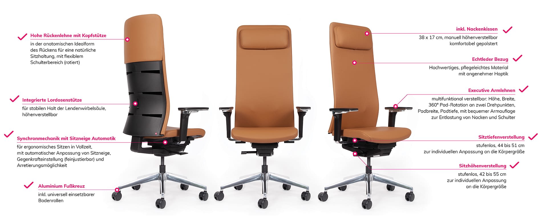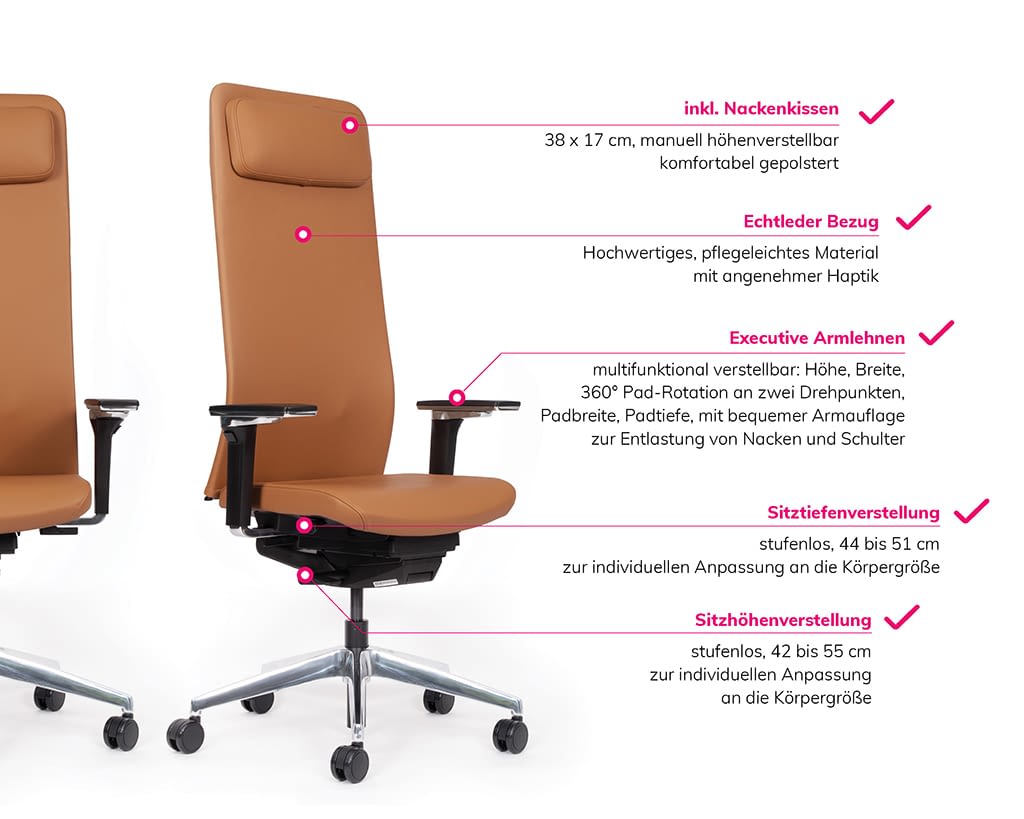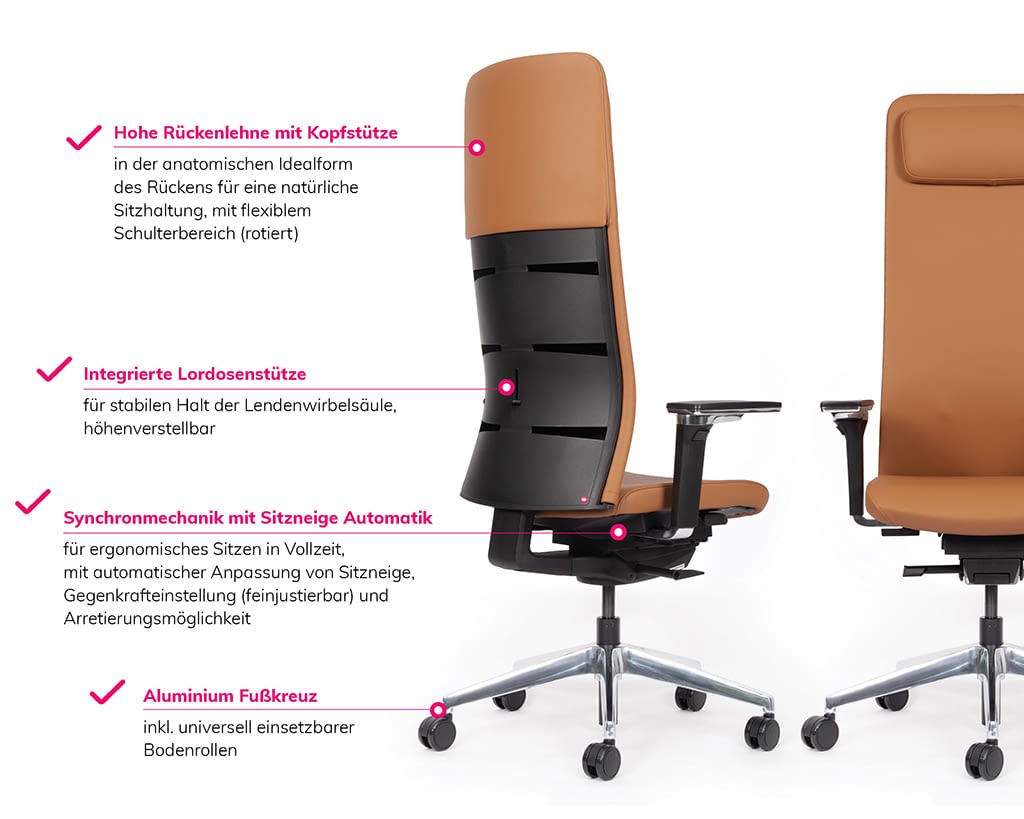 Sie haben Fragen zu unseren Bürostühlen bzw. Chefsesseln / Bürostühlen mit Kopfstütze fürs Chefbüro wünschen eine persönliche Beratung? Wollen zum Beispiel die Sitzhöhe anpassen lassen auf 60 oder 65 cm?