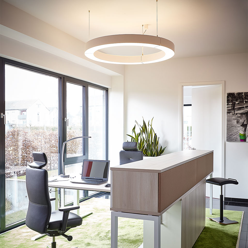 Nur ein ganz kleiner Teil unseres Sortiments an Bürolampen präsentieren wir in unserem Shop online, weil wir der Meinung sind, dass jedes Unternehmen individuelle Bedürfnisse hat, die individuelle Lösungen erfordern. Vertrauen Sie auf unsere Expertise und lassen Sie uns gemeinsam die ideale Beleuchtung für Ihr Büro schaffen: Jetzt Termin vereinbaren!