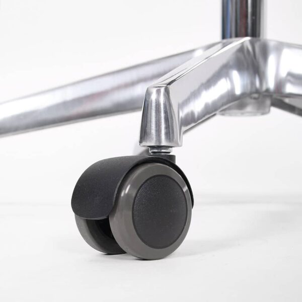 Die Gummierung hat darüber hinaus eine rutschhemmende Wirkung, die sicherstellt, dass der ergonomische Bürostuhl auf den relativ glatten Oberflächen ausreichend Halt hat. Gleichzeitig senkt sie Rollgeräusche und sorgt für eine höhere Laufruhe.