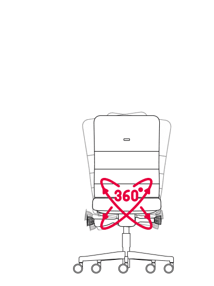 Die Sitzneige kann dafür entweder in verschiedenen Neigungswinkeln nach vorn arretiert werden. Alternativ und vorzugsweise ist sie ganz frei. Das bedeutet, beim Vorbeugen bleibt der Sitz nicht starr. Stattdessen senkt sich die Sitzvorderkante jedes Mal ab, wenn man sich nach vorn beugt, ganz automatisch und sanft gedämpft. Also ohne, dass man jedes Mal daran denken oder manuell etwas einstellen muss. Das Becken folgt damit ganz intuitiv der Sitzneige. Man nennt das auch den Sitzball-Effekt.