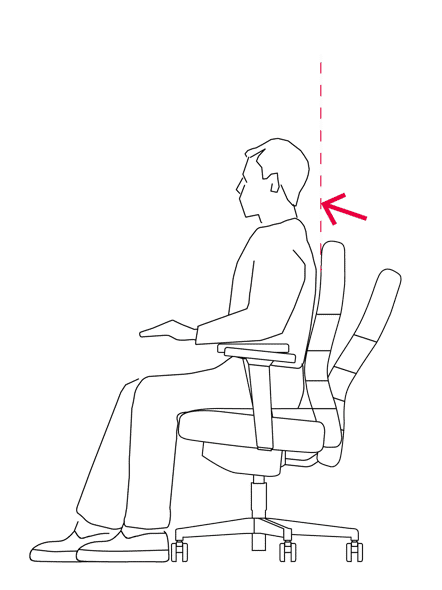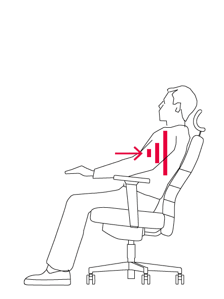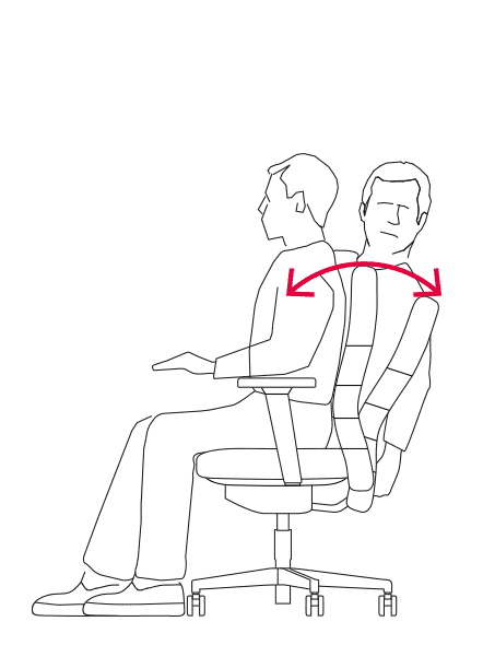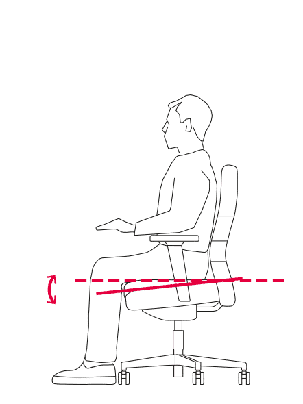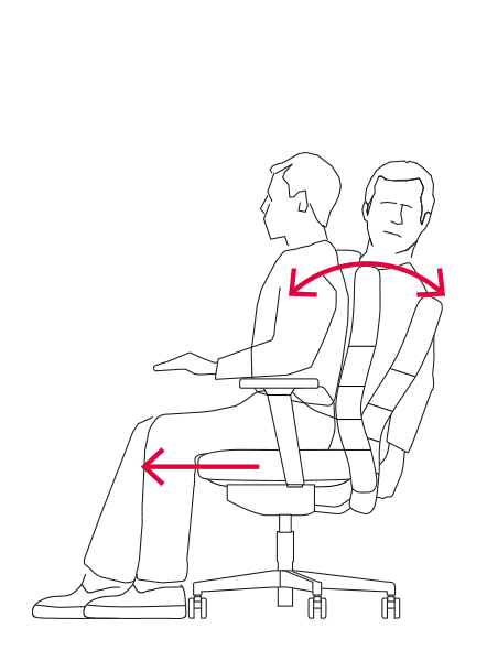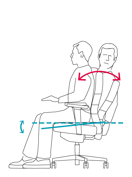 Sitzt man ganz aufrecht auf dem Bürostuhl, haben Oberkörper und Beine einen Winkel von ca. 90° zueinander. Lehnt man sich nach hinten, wird dieser Winkel größer. Lehnt man sich nach vorn, beispielsweise beim Griff nach dem Telefonhörer, wird dieser Winkel kleiner. Damit erhöht sich aber auch der Druck auf die Oberschenkelrückseite. Das Blut kann weniger gut zirkulieren. Die Bandscheiben werden stärker belastet.