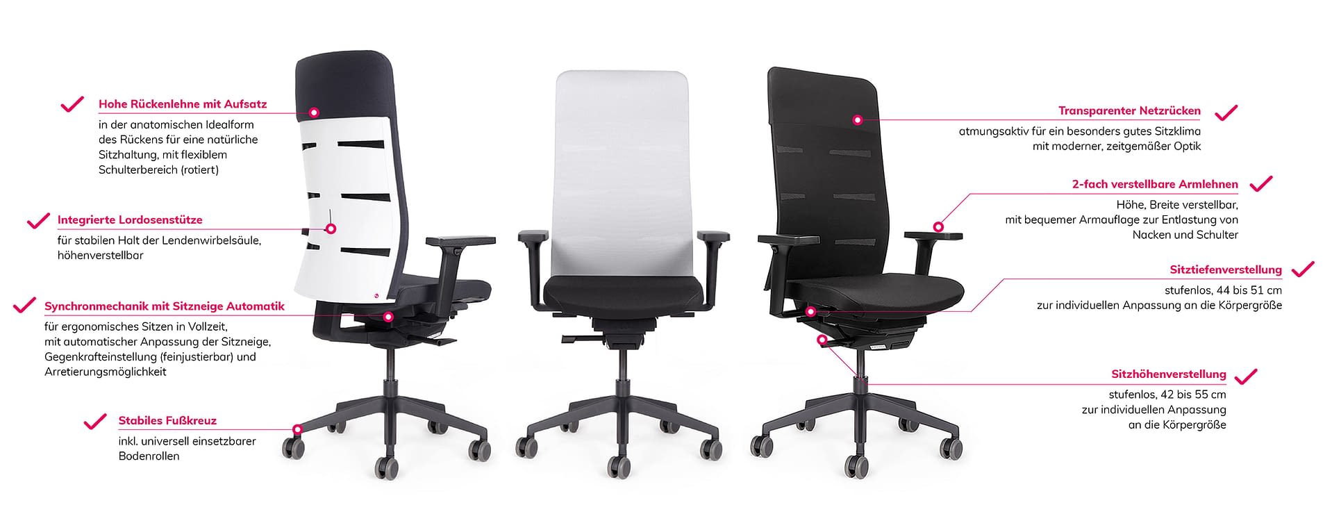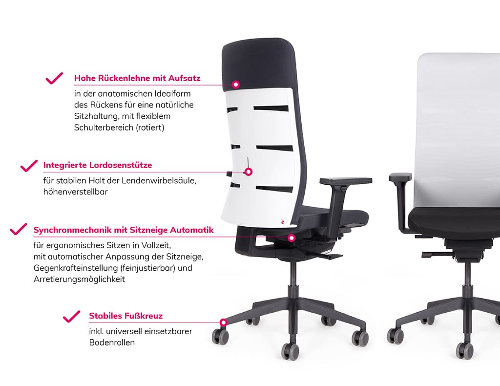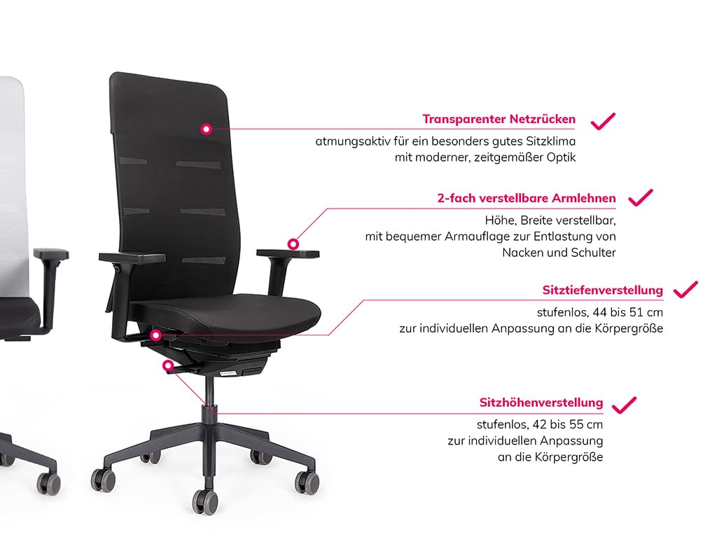 Kombiniert mit hochwertigen Materialien, unserer 10 Jahres Qualitätsgarantie und ergonomischem Design, bieten die weißen Bürostühle von lento nicht nur Stil, sondern auch höchsten Sitzkomfort. Setzen Sie auf die zeitlose Eleganz weißer Bürostühle und machen Sie Ihr Büro zu einem Ort, der inspiriert und motiviert.