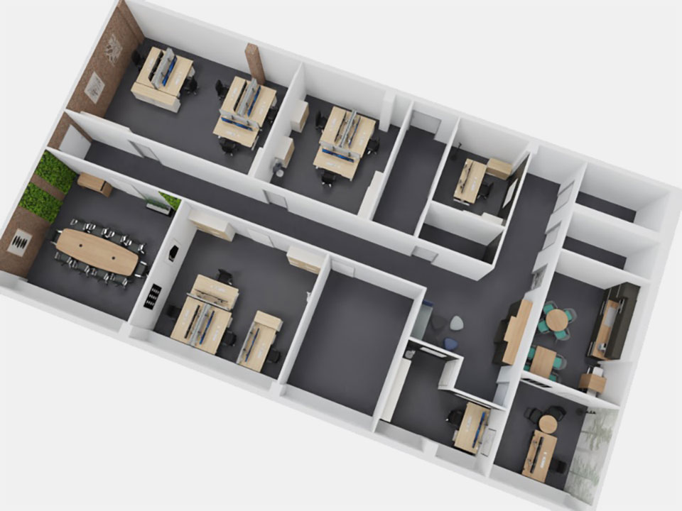 ca 300 m² mit 15 ergonomischen Arbeitsplätzen, Schränken, Küche und Konferenzraum