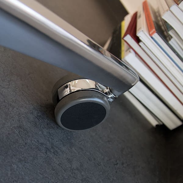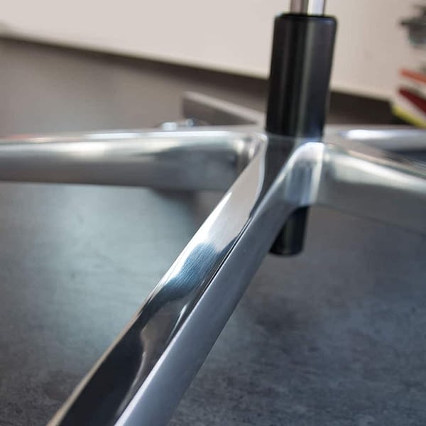 Zugleich setzen wir bei diesem Produkt auf extrem belastbare Komponenten. Die müssen etwas aushalten, auch auf Dauer. Sie sind also so verstärkt, dass auch eine 8-h-Sitzdauer pro Arbeitstag kein Problem darstellt. Dazu gehört die Mechanik, die dafür sorgt, dass sich der Drehstuhl mit dem Nutzer nach hinten neigt. Dazu gehören aber auch Armlehnen, Gasfeder und die Rollen am Stuhl.