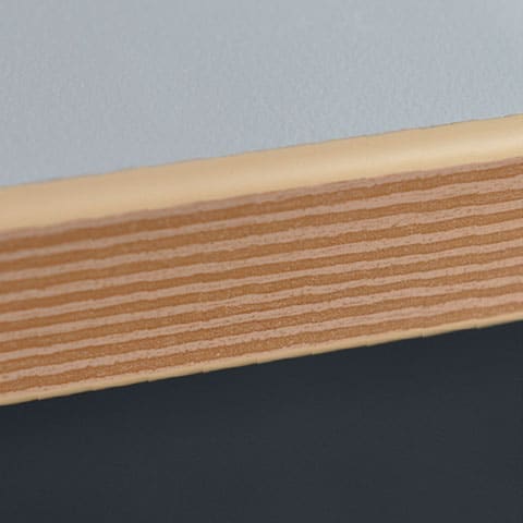 Wie alle Büromöbel sind auch die lento Steh-Sitz-Schreibtische maximal flexibel, was Größe, Form und Farbe angeht. Die Tischplatte beispielsweise ist 25 mm stark und in zahlreichen Dekoren und Kantenfarben erhältlich. Darunter auch sogenannte Synchrondekore, die sich wie Echtholz anfühlen und die genauso aussehen, so dass sie auf den ersten Blick kaum noch zu unterscheiden sind.