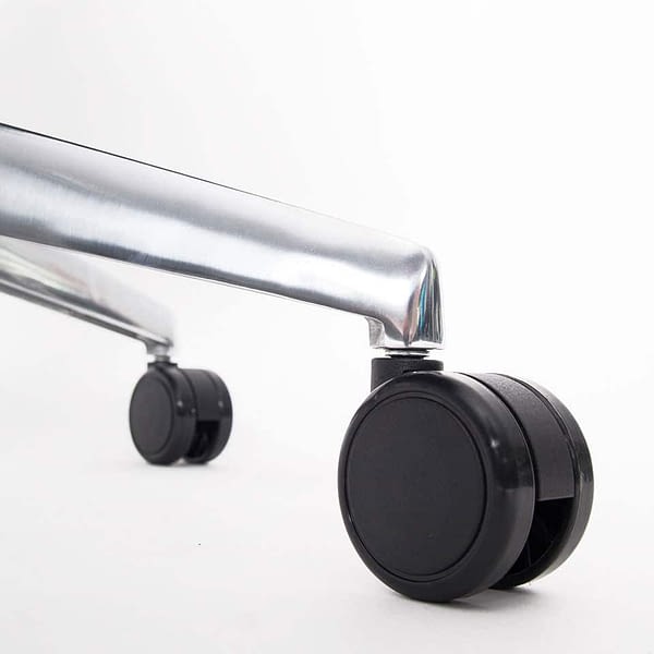 Die Gummierung hat darüber hinaus eine rutschhemmende Wirkung, die sicherstellt, dass der ergonomische Bürostuhl auf den relativ glatten Oberflächen ausreichend Halt hat. Gleichzeitig senkt sie Rollgeräusche und sorgt für eine höhere Laufruhe.